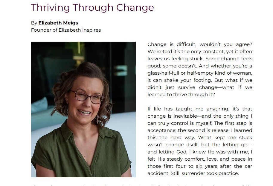 Explore a curated collection of Elizabeth Meigs’ media appearances, showcasing her expertise as a transformational coach and thought leader.
