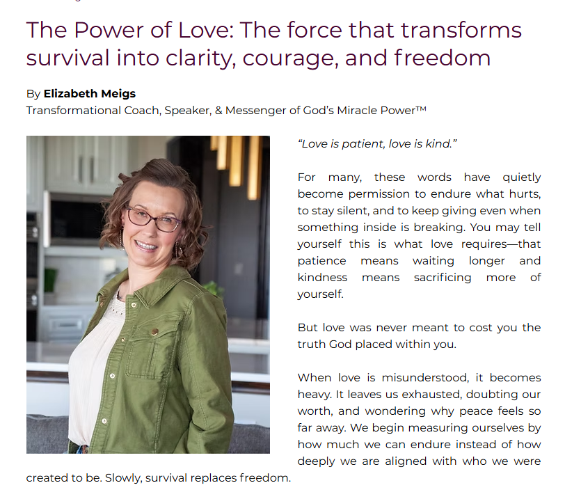 Join Elizabeth Meigs as she guides you through a transformative journey from survival to clarity and courage. Explore the profound impact of love and learn actionable steps to reclaim your freedom.